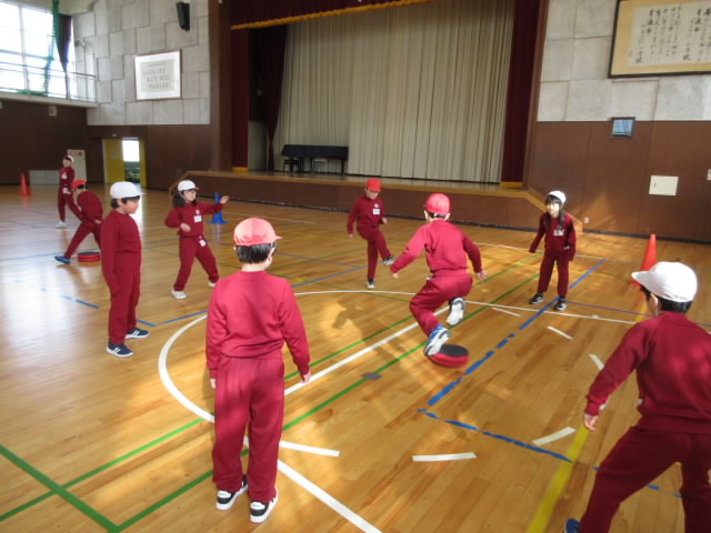 この日は丸いボールではなく,円筒形のパックを使って,中当てをしていました。
