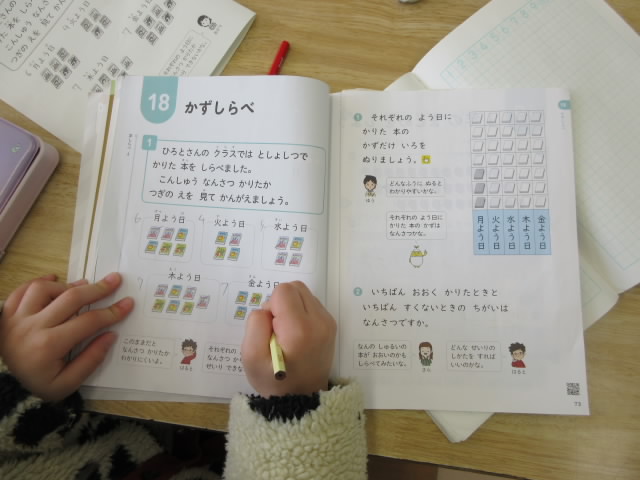 1年生の算数は「かずしらべ」です。