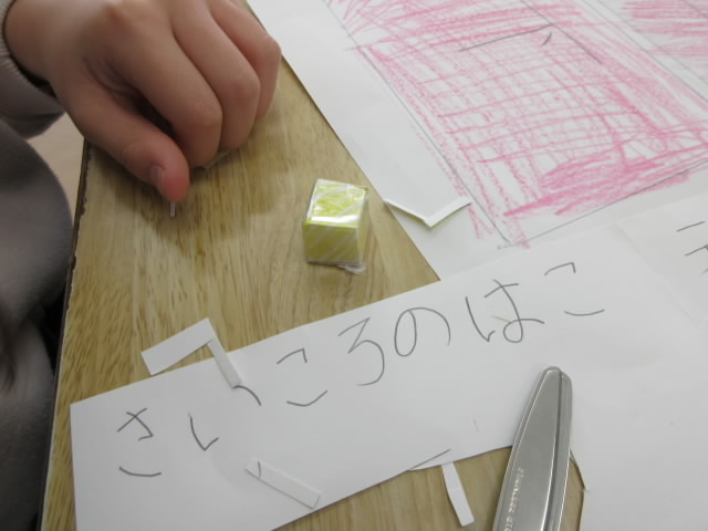 1組はひごと玉で,2組は画用紙で箱の形を作っていました。