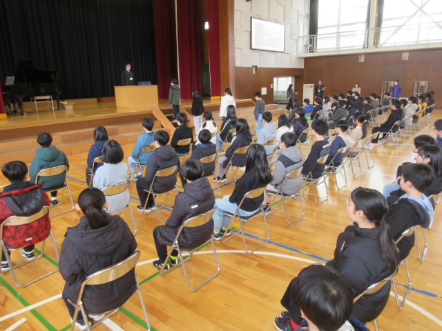 体育館では,式で行う所作について6年生の練習が進んでいます。