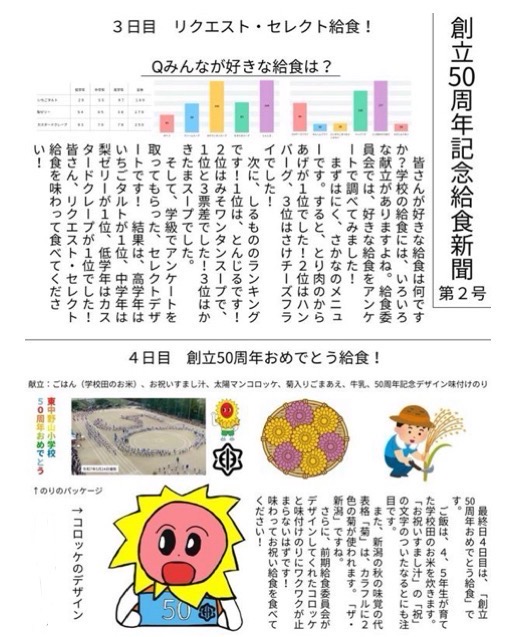 子どもたちの想いと笑顔があふれる、嬉しい50周年お祝い給食週間となりました。