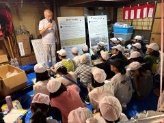 6年生の総合的な学習の時間では、しも町に残る北前船に関連した場所に行き、しも町について「知る」という学習をしています。これまでに、金刀比羅神社や旧小澤家住宅、みなとぴあなど様々な場所で実際に展示物を見ながら話を聞き、学んできました。22日の校外学習では、大橋屋で女将さんから大橋屋の歴史や本町通りの街の様子についてお聞きし、シティガイドの渡辺さんから新潟まつりのはじまりや現在までどのように受け継がれてきたかを学びました。