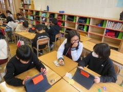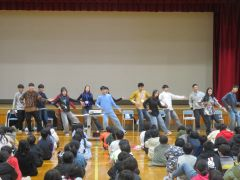 14日(水)にモンゴルの学生14名をお迎えし、交流会を実施しました。1時間目は、全校が体育館に集まり全体での交流でした。はじめに、全校児童が「ひよりっこのきずな」の歌を披露し、動画で日和山小学校を紹介しました。次に、モンゴルの国や学校を紹介していただきました。モンゴルの学生による舞踏も披露してもらいました。最後に、「貨物列車」で楽しく交流しました。2時間目は、学年に分かれて、伝統的な遊び、おもちゃランド、新潟甚句を踊る、ドッジボール、なわ跳びや紙飛行機飛ばし、折り紙などの活動を行いました。言葉はうまく通じなくても、楽しく交流することができました。日本に比較的近い異国の文化に触れることができた一日でした。