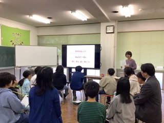 4年生は総合的な学習で福祉について学んでいます。今日は聴覚障がいをもっている方に来校していただき、普段どのように工夫して生活しているのかを教えていただきました。 明るく朗らかに、日常の …