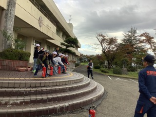 社会科の学習で消防について学んでいる3年生。今日は南消防署の方から来ていただき体験もさせてもらいながら学習しています。 消化器の使い方を教えてもらい、 煙の中でど …