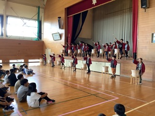 ご来賓の皆様、保護者の皆様、地域の皆様に多数ご来校いただき、見守られる中、オープニングは無事終了しました。 4年生の樽太鼓でスタート 作品紹介 大勢の前で、一生懸命発表 …