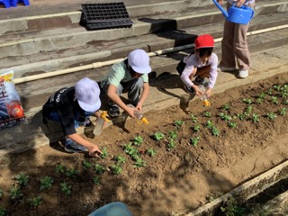 ブルボン様からたくさん花の苗を頂きました。 1年生が力を合わせて苗を植えてくれました。 春にはきっと綺麗な花をいっぱい咲かせてくれますね。