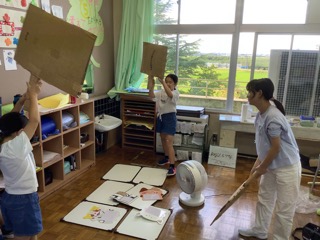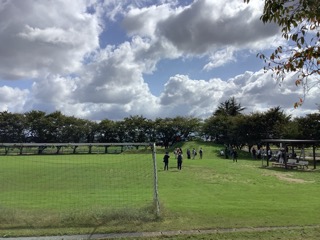 そよ風保育園の太陽組さんが、親子遠足で立ち寄ってくれました。 学校探検をしてからグラウンドで遊びました。 いいお天気で良かったですね。次の目的地まで、行ってらっしゃい。