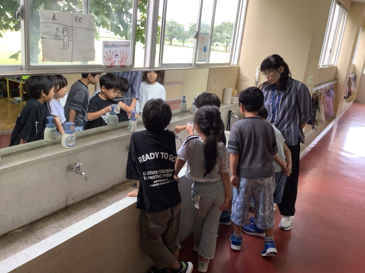 月に2回、ALTの渡邉先生が、担任の先生と一緒に外国語、外国語活動の授業をしてくれます。 歌を歌ったり、クイズをしたり、ゲームをしたり楽しみながら外国語に親しむ時間を子どもたちは楽しみにしています。 …