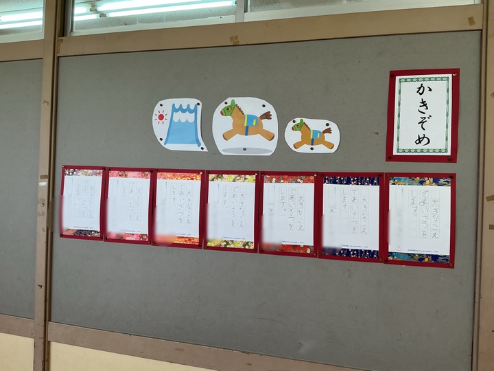 今日から校内書初め展が始まります。冬休み前から練習してきた書初めを掲示しています。 1年生も丁寧にマスの中に文字を入れて書くことができるようになりました。 6年後には・・・ こん …