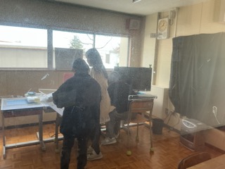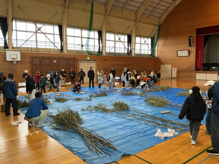 今年も無事、どんど焼きを迎えることができました。 体育館に地域の方が準備してくださった竹が並びます。 笹の先に、書き初めとするめ、もぐら(の絵)を結びつけます。 …