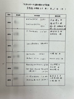 今年度最後の読み聞かせがありました。最後はたけのこ班ごとに、みんなでお話を楽しみます。 異学年対象ということで、幅広く興味が …