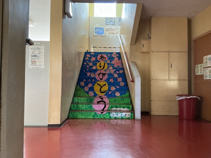 5年生が6年生のために階段アートを作りました。「完成しました!」という報告に、見に行ってみると・・・ 素敵なアートができていました。 とっても素敵な …