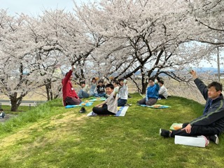 今日は、令和8年度最初に給食でした。天気もよかったので、みんなでグラウンドに出て給食を食べました。