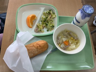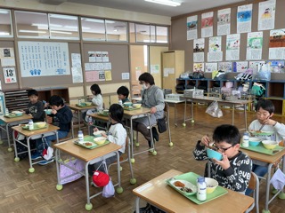 今日の給食メニューは「黒糖きな粉揚げパン」です。 随分前から楽しみに待っていた子どもたち。 好きなメニューばっかり!笑顔がこぼれます。 6年生は …