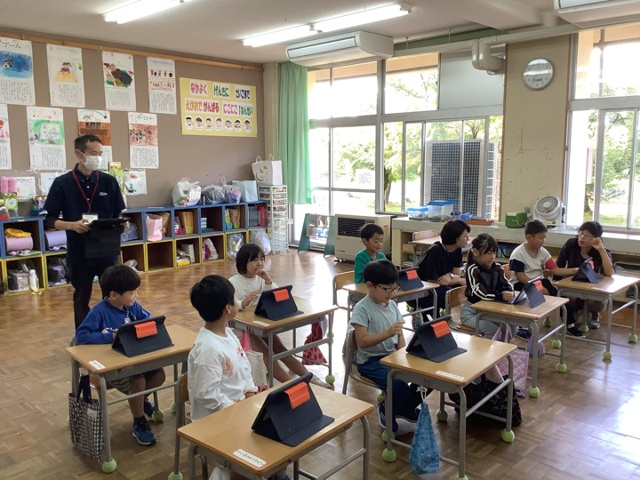 1年生が、ICT支援員本間さんから、ロイロノートでクイズを出してもらっていました。