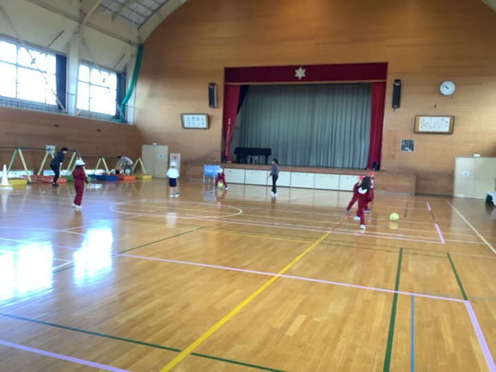 ボール蹴りゲームに取り組んでいます。