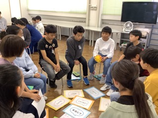 今日は第一回目、ファシリテーターになる5.6年生が体験しました。