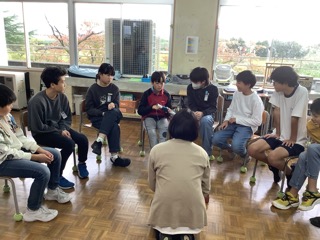 ボールを持っている人がお話をします。他の人は聴きます。話したくない人は話さなくて構いません。誰の考えも否定しません。
