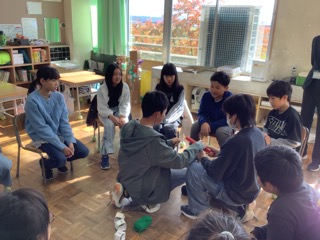 今週末にたけのこ班で行う哲学対話に向けて、各班で一つずつ「コミュニティボール」を作りました。このボールを持っている人だけが話すことができます。ボールはみんなで対話をしながら作ります。色も、巻いている人が変えたい時に変えることができます。なので、みんな違うボールになるのです。