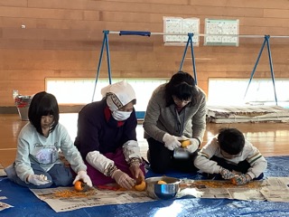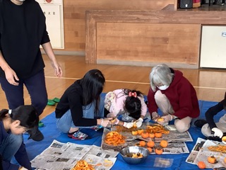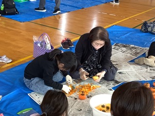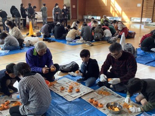 子どもたちも一生懸命皮を剥き、参加してくださった皆さんがとても手際が良く、予定よりかなり早く作業が進みました。