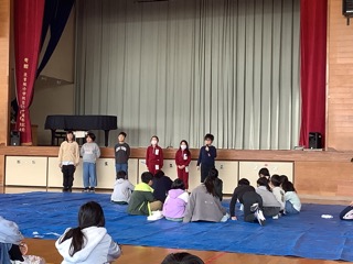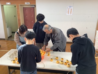 紐に吊るす仕事は6年生の役目です。次々と吊るしていきます。