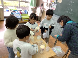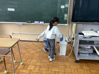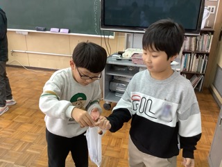 1年生は生活科で秋をたくさん探しました。今日は見つけた「秋」を使っておもちゃを作ります。