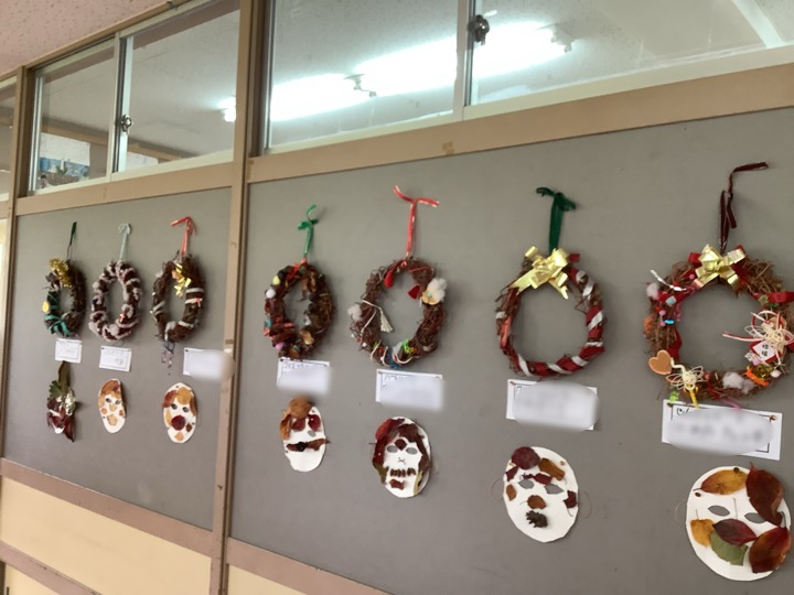 廊下には他にも秋で作った作品が並んでいます。