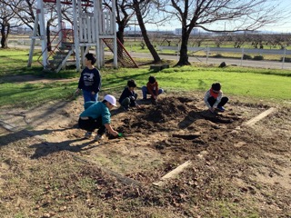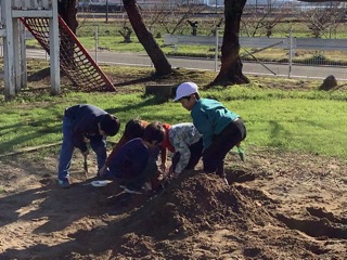 短い昼休みですがいいお天気に誘われて、グラウンドで遊ぶ子どもたち。
