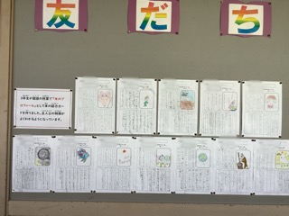 図書室前には、3年生の学習が紹介されています。