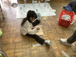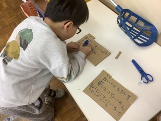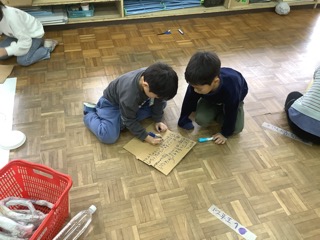 一人が説明の看板を書き始めると、「僕も書く!」「ルールも書こう!」と、覚えたてのひらがなで看板を作り始めました。