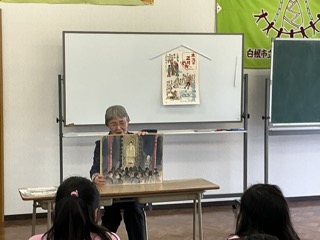 今日は玄龍寺の関根様に御来校頂き、大切な紙芝居を語りで聴かせ頂きました。