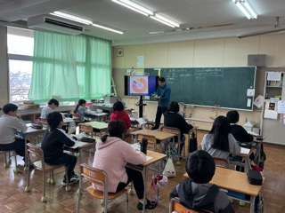 今日は第4回学校運営協議会です。会議の前に、子どもたちの学習の様子を見ていただきました。