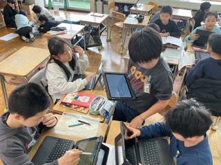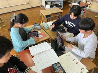 4年生は国語で、調べたことをまとめて報告する学習に取り組んでいます。