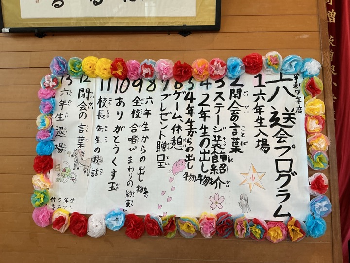 インフルエンザ流行のため延期した6年生を送る会が明日に迫りました。流行がおさまらず2回延期した学校もあると聞いています。何とか下火になり、明日は会を行えそうです。
