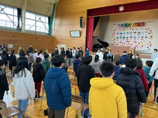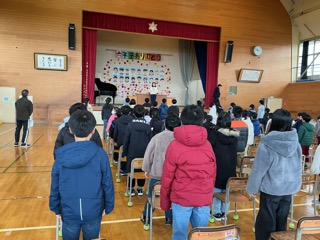 卒業式に向けての練習をしましった。茨曽根の子どもたちは、とっても上手なので、全員で合わせてみること、動きを確認することなど、当日の見通しをもてるようにという基本的な確認だけで済ませます。