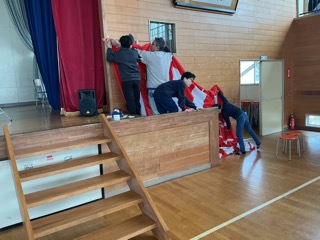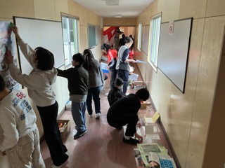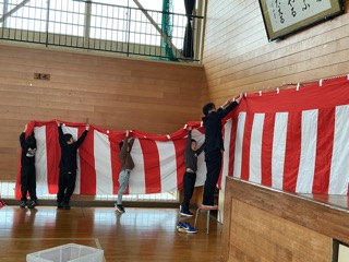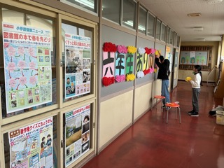 保護者控室には、6年生を送るかいで作った飾りを飾ります。