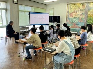 6年生は、総合的な学習の時間に茨曽根のことについて学習を始めました。これまで学習してきたことをもとにさらに考えを進めていきます。先週は、細河さんにきていただき、主に茨曽根の歴史について学びました。地名の由来や、その当時の様子など写真や地図などをもとにお話ししてくださいました。子どもたちは、新たな気づきや発見をしていました。