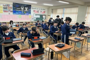 本日、6限に2年生への「新端末(セカンド端末)の配付」が行われました。今日まで、3年生全クラスと1年生の一部のクラスでは、技術の授業時等で配付され、アカウント情報の確認や端末に名前シールを貼るなどの …