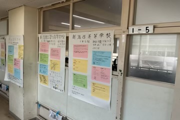 1年生の教室前の廊下には、今、色彩豊かな模造紙がずらりと掲示されています。総合的な学習の時間に取り組んだキャリア教育の一環、「高校調べ」の成果です。各班で興味のある高校について、学科の特徴や部活動、 …