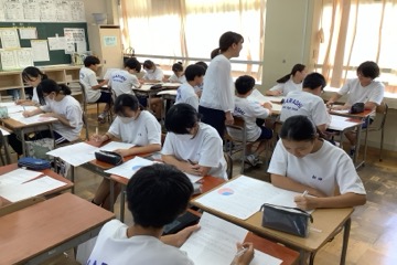 昨日、秋の教育実習が全て終了しました。 3週間の実習を終え、終学活であいさつを放送で行いました。写真下は、教務主任が順番を確認しているところです。あいさつ後、各教室から拍手が聞こえてきました。爽やか …