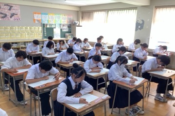 今日は3年生の確認テストが実施されました。写真は3年1組の様子です。集中して問題に取り組んでいました。結果は後日になりますが、一人一人がここまでの学習の成果を感じられることを願います。