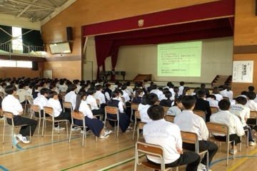 一方、3年生は進路学習の一環で、キャリア学習講演会を実施しました。ハローワークの方をお招きし、高卒・大卒別の就職状況など詳しく説明していただきました。生徒たちも今後の進路選択の一助になったことと思います。