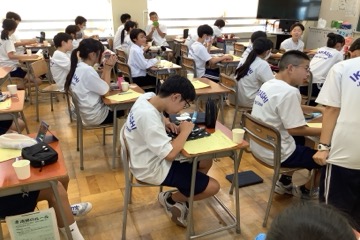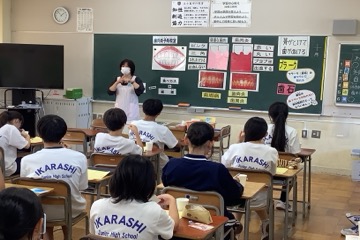 歯科衛生士の方々をお招きしました。写真は1年1組、3組の様子です。丁寧に分かりやすく歯肉炎の状態などの説明をしていただきました。ありがとうございました。