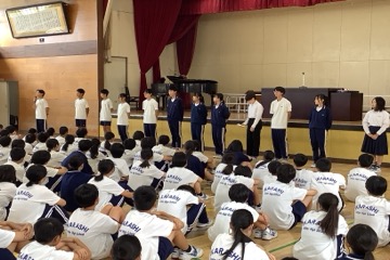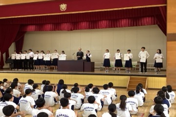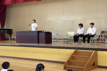 各学年の代表者から前期の反省と後期の抱負を発表してもらいました。学習面や部活動、体育祭などについて堂々と発表してくれました。また、後期に向けて「全力で取り組む」「成長した姿を見せたい」「結果で感謝を伝えたい」など力強く語ってくれました。