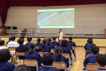 6時間目、1年生の総合学習「SDGsで地域創生」の学習の一環で、新潟西海岸リゾート計画協議会の原澤様をお招きして講演会を実施しました。