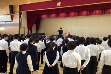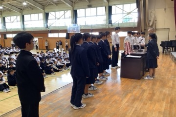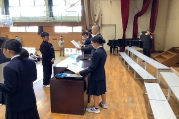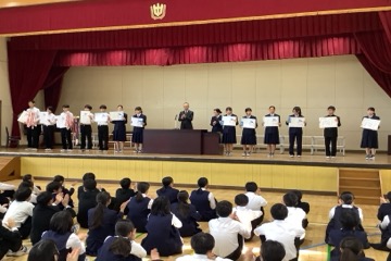 今朝も大きな声で校歌を歌っていました。校長先生も歌声を褒めていました。その後、表彰へと移りました。