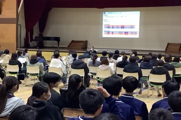 6時間目に「2学年PTA修学旅行説明会」が行われ、旅行会社の方から保護者と生徒のみなさんに修学旅行の概要について説明していただきました。