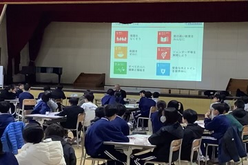 5・6限には、1年生を対象に「SDGsボードゲーム」出前授業が行われました。1年生は、後期の「総合的な学習の時間」で、地域創生とキャリアに関する学習を計画しています。本日の授業は、そのスタートとなります。