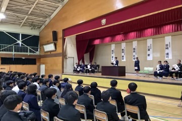 いよいよ明日は生徒会役員選挙の投票です。今日聞いた演説を振り返り、自分の意志で選び、学校をよりよくしていく第一歩にしてほしいです。